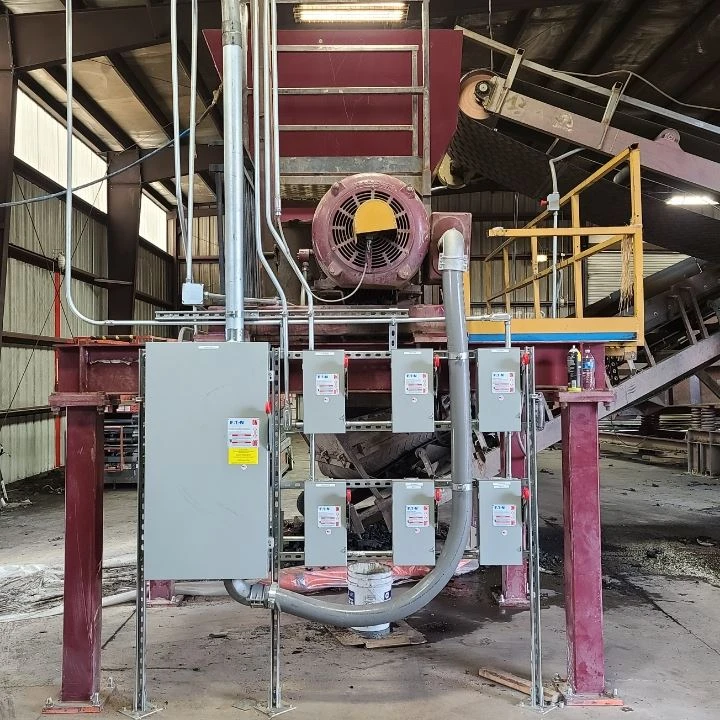 Castle Tire, Sedalia, CO – Disconnected all electrical for a tire recycling facility with its operations outside and rebuilt the electrical system in a new location indoors. Ran new conduit and set new disconnects as well as set up the motor control center and re-wired and programmed the PLC. 7 motors including a 250 hp tire shredder. Designed a start and emergency stop system to work with the PLC. Completed this in 5 calendar days.