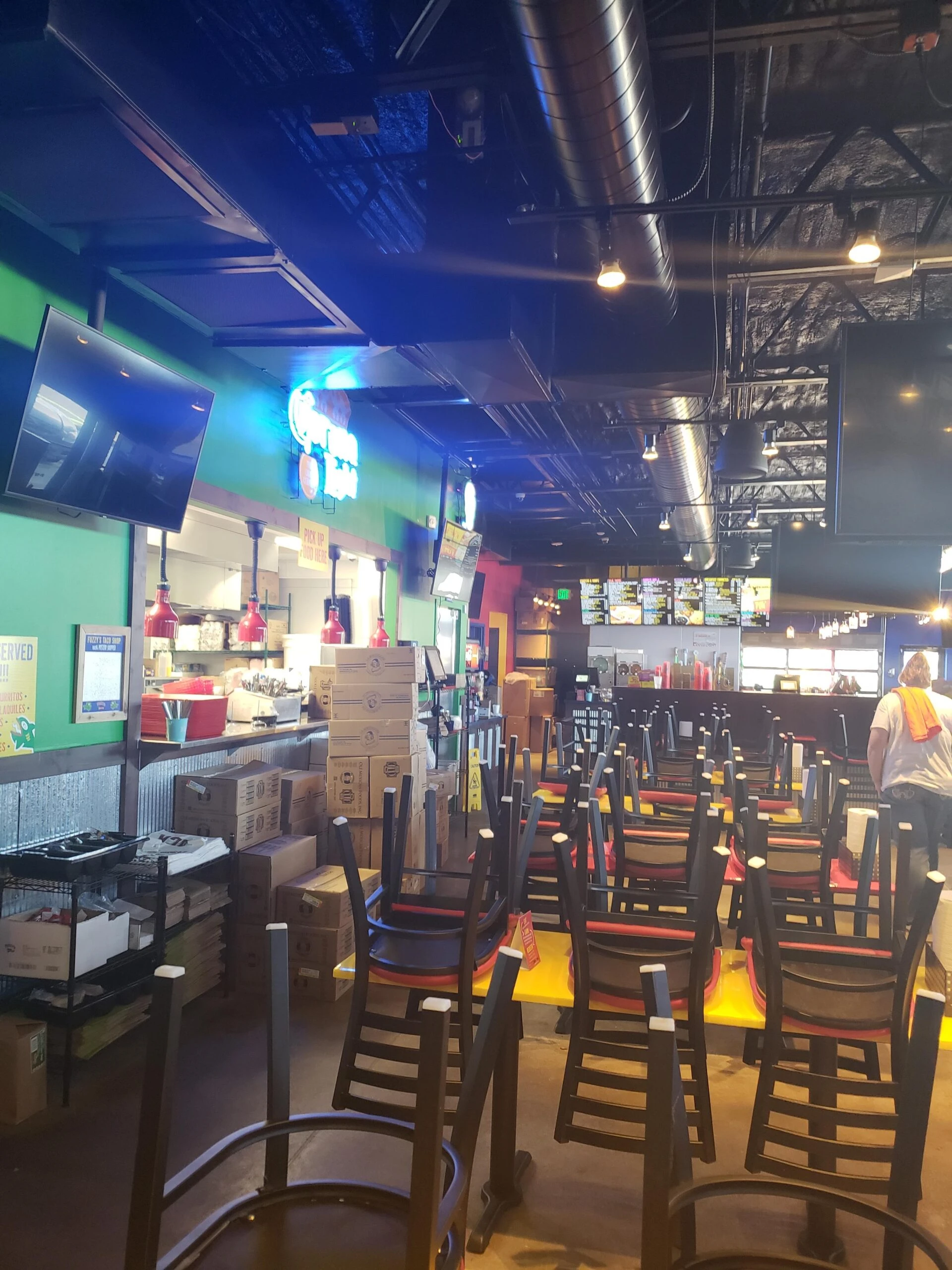 Tenant finish from a new core and shell. Full electrical installation for a taco restaurant with low-volt lighting control system, including lighting fire suppression system, HVAC equipment and general purpose receptacles.